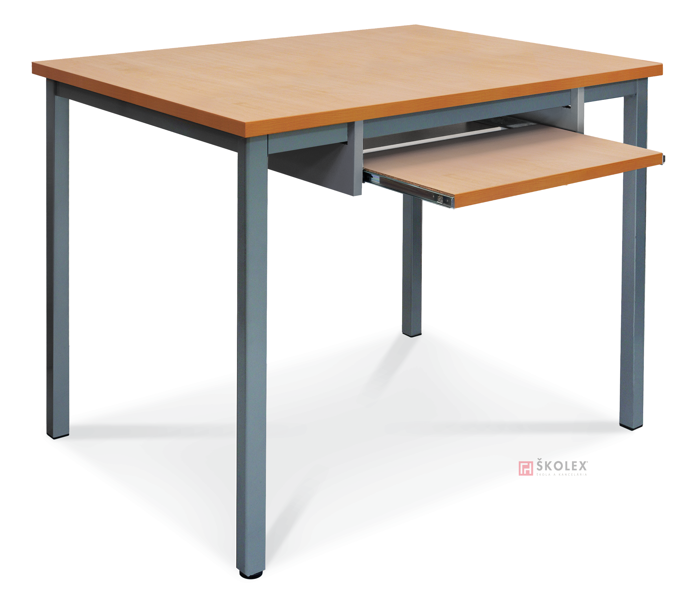 Computertisch einstellig/zweistellig, Stahlkonstruktion aus Vierkantprofil 35x35 mm, pulverbeschichtet (Wahl aus RAL Musterblatt). Die Beine mit den Kunststoffendungen, ein Bein inkl. Rektifikation für die Einstellung des Tisches in die stabile Lage. Laminierte Holzspanplatte 18mm dick, 2mm ABS Kante. Grundausführung ohne Ausziehplatte für Tastatur und PC Box. Zusätzliche Ausführung - Ausziehplatte, PC Box, färbige Holzspanplatte für einen Aufpreis.