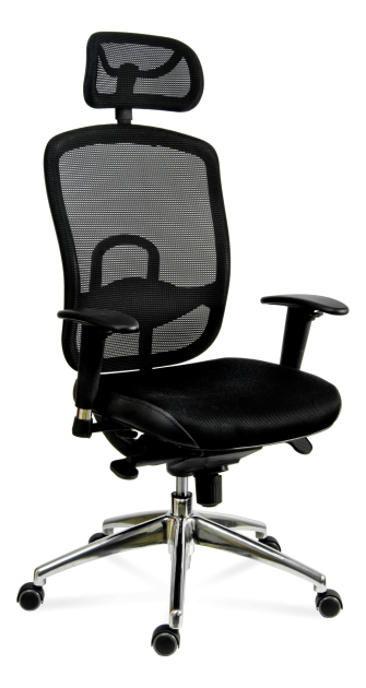 Bürostuhl mit atmungsaktivem Rückenlehne, inkl. Nackenstütze, synchronischer Mechanismus, Einstellung der Stärke des Gegengewichtes, Kreuzlehne, verstellbare Armlehne mit weicher Oberfläche, aluminium Basis, Rollen mit Gummibüchse. Trägfähigkeit 130 kg. Ausführung Rückenlehne/Sitz: graues Netz/grauer Stoff, schwarzes Netz/schwarzer Stoff.
