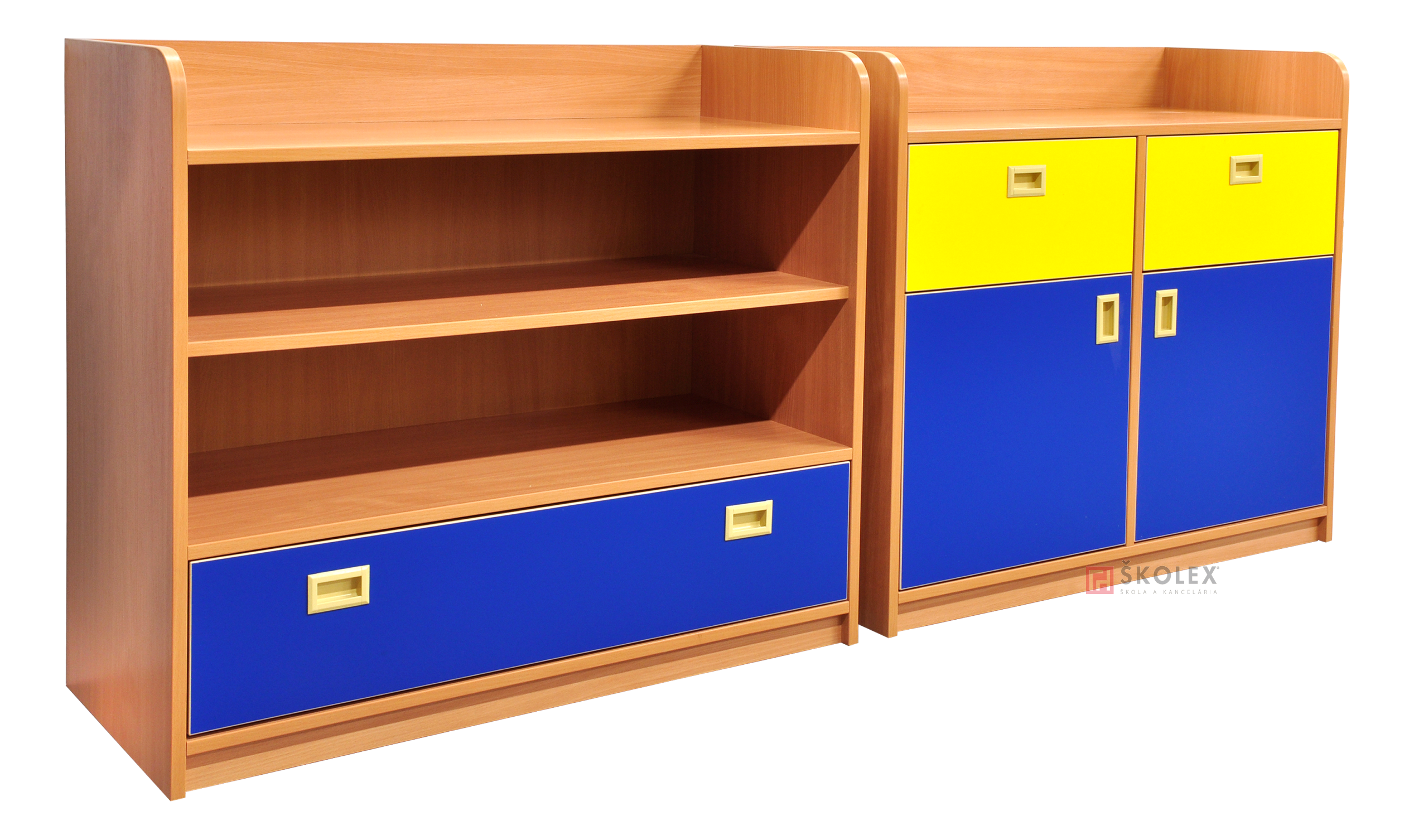 Laminovaná drevotriesková doska hrúbky 18mm, 2mm ABS hrana. Dvierka a čelá zásuviek je možné objednávať aj vo farebných prevedeniach LDTD, korpus len v základných drevodekóroch (buk, dub Sonoma, javor, jelša, čerešňa), antracitovej, čiernej, šedej a bielej farbe LDTD. Madlá sú kvôli bezpečnosti detí zapustené, farba strieborná, bez možnosti farebnej úpravy. Vrchná časť skrinky je riešená ako priestor pre odkladanie knžiek a hračiek. Chrbát skrinky tvorí sololit alebo v prípade ustavenia do priestoru pohľadová LDT doska vo farbe korpusu. Pri ustavení do priestoru umožňujú skrinky optické rozdelenie miestnosti. Za príplatok je možné objednať kolieska ku skrinke.