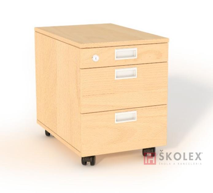 Moderný 3-zásuvkový mobilný kontajner s organizérom na perá s variabilnými prepážkami a zámkom. Parametre (VxŠxH) 53,2x40x60cm (mehr)