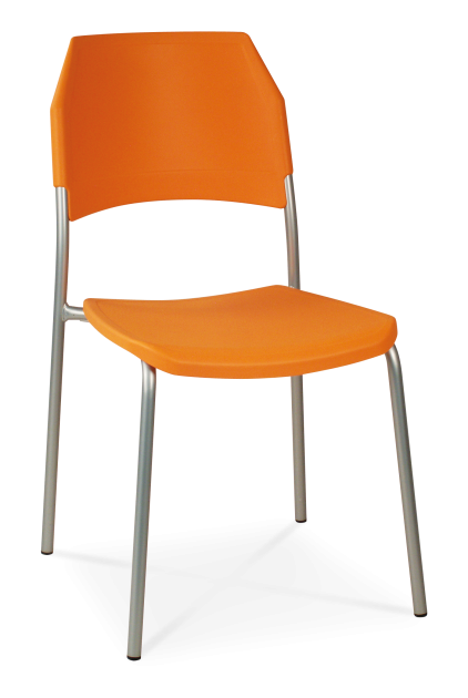 Plastová stolička Kali, je omývateľná, vhodná do priestorov jedální. Kovová konštrukcia striebornej farby (mehr)