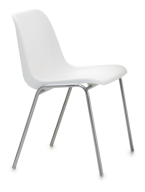 tolička s chromovanou kovovou podnožou, plastová škrupina vyrobená z polypropylénu, dostupná vo viacerých farebných vyhotoveniach, ľahko vodou omývateľná (mehr)