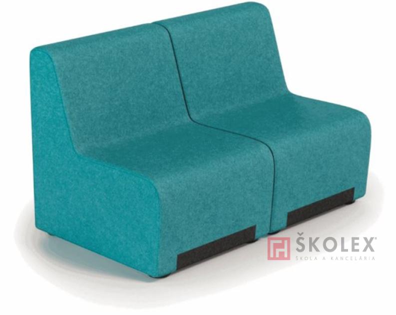 Celo čalúnené sofa, prvok modulárneho systému, navrhnutý pre školské relaxačné zóny na podporu kreatívnej a interaktívnej práce žiakov. Drevená konštrukcia, expendovaná polyuretánová výplň V.45mm, klzáky s rektifikáciou 0 - 10mm. Nosnosť 120 kg/1 miesto. Záruka 60 mesiacov. Možnosť výberu čalúnenia - látka BN.
