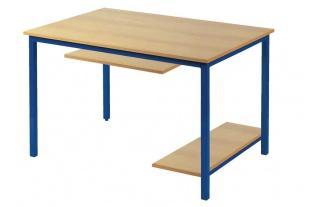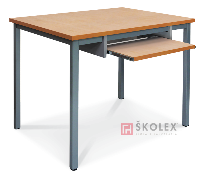Computertisch einstellig/zweistellig, Stahlkonstruktion aus Vierkantprofil 35x35 mm, pulverbeschichtet (Wahl aus RAL Musterblatt). Die Beine mit den Kunststoffendungen, ein Bein inkl. Rektifikation für die Einstellung des Tisches in die stabile Lage. Laminierte Holzspanplatte 18mm dick, 2mm ABS Kante. Grundausführung ohne Ausziehplatte für Tastatur und PC Box. Zusätzliche Ausführung - Ausziehplatte, PC Box, färbige Holzspanplatte für einen Aufpreis.