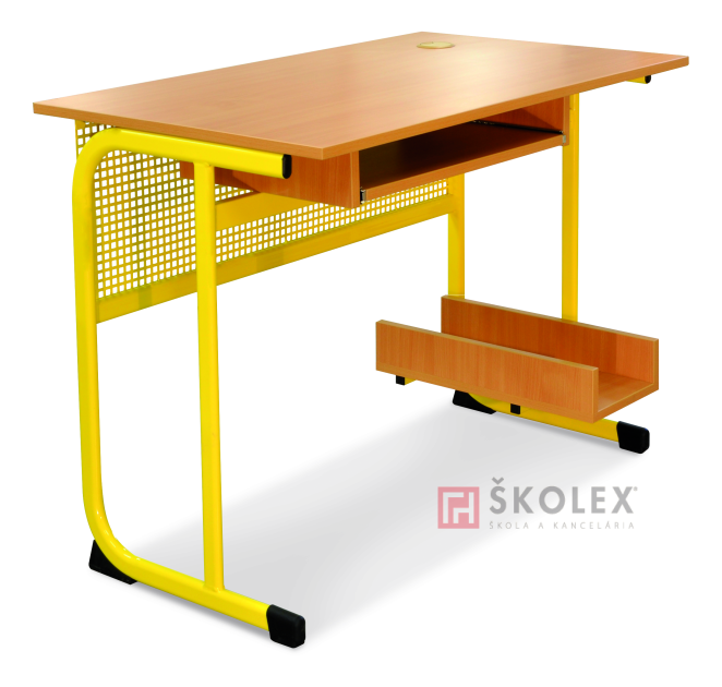 Computertisch Kleopatra einstellig, zweistellig, Stahlkonstruktion aus Ovalprofil 38x20 mm, pulverbeschichtet (Wahl aus RAL Musterblatt), Kusntstoffgleiter ohne Filzeinsatz (Filzeinsatz für einen Aufpreis). Grundausführung ohne PC Box, Ausziehplatte für Tastatur, Deckplatte, Kabeltunnel. Zusätzliche Ausstattung - PC Box, Ausziehplatte für Tastatur, Deckplatte, Kabeltunnel, färbige laminierte Holzspanplatte.