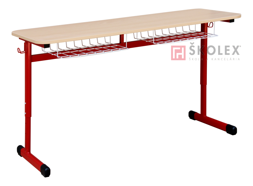 Tisch Titan, höhenverstellbar von der Größe 3 bis 7. Ovalprofil 50x30mm, pulverbeschichtet (Wahl aus RAL-Musterblatt), Beine mit Kunststoffgleitern ohne Filzeinsatz (Filzeinsatz für Aufpreis), Ablage - Gittekorb, weiße Farbe, Taschenhaken, Holzspannplatte 18mm dick, 2 mm ABS Kante, Buche. Möglichkeit der Wahl anderer Tischplatten - BOND 19mm dick, mit HPL-Oberseite, Kante aus Buchenmassiv oder BISON 22mm dick, mit PUR Kanten.