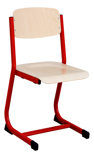 Stahlkonstruktion aus Ovalprofil 38x20mm, pulverbeschitet (Wahl aus RAL - Musterblatt). Die Beine sind mit den Kunststoffgleitern beendet. Sitz und Rückenlehne aus der 7-lagigen Sperrholzplatte, Buche, beidseitig lackiert. Die Stühle sind stapelbar. Größe 3, 4, 5, 6.