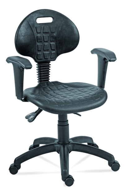 Polyuretánová dielenská stolička, plastová báza s kolieskami (klzákmi), nastaviteľná hĺbka sedadla a výška operadla, uhol operadla pevný, výšková nastaviteľnosť pomocou plynového piestu. Nosnosť 120 kg, záruka 24 mesiacov.
