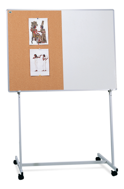 Der robuste Stahlständer mit drehbaren Rollen (vordere Rollen mit einer Bremse), ermöglicht die Höheneinstellung der Tafel in vier Lagen.