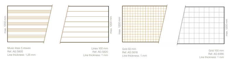 - Za príplatok možnosť objednania rastrov: linky 10 cm, štvorce 10 cm, štvorce 5 cm, notová osnova.