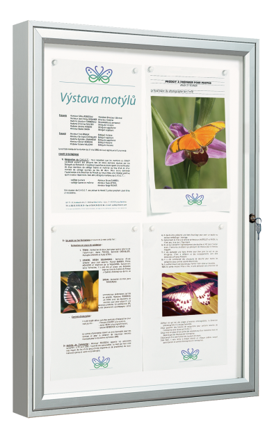 Einfache und Feste Vitrinenn für die Veröffentlichung der Informationen draußen. Ideal für die Gebäudefassade. Rissfestes 4 mm dünnes Plexiglas, Dichtungsverbindungen aus Elastomer, Löcher für Kondensation, Die Grundlage aus Zinkblech, Weiß lakiert, Sicherheitsschloss.